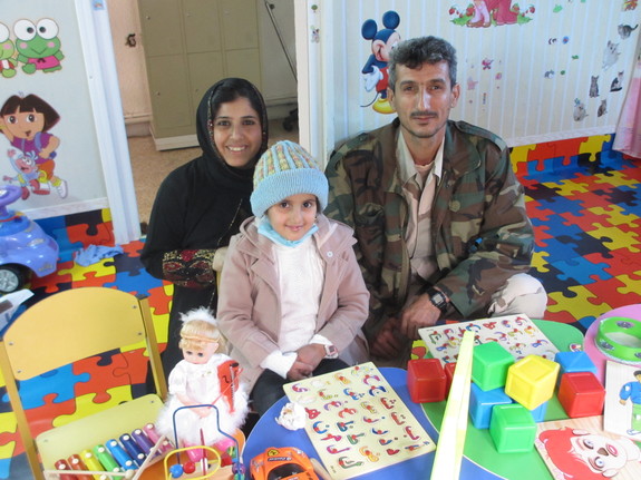 【プレイルームで両親と共に笑顔を見せるイマンちゃん】