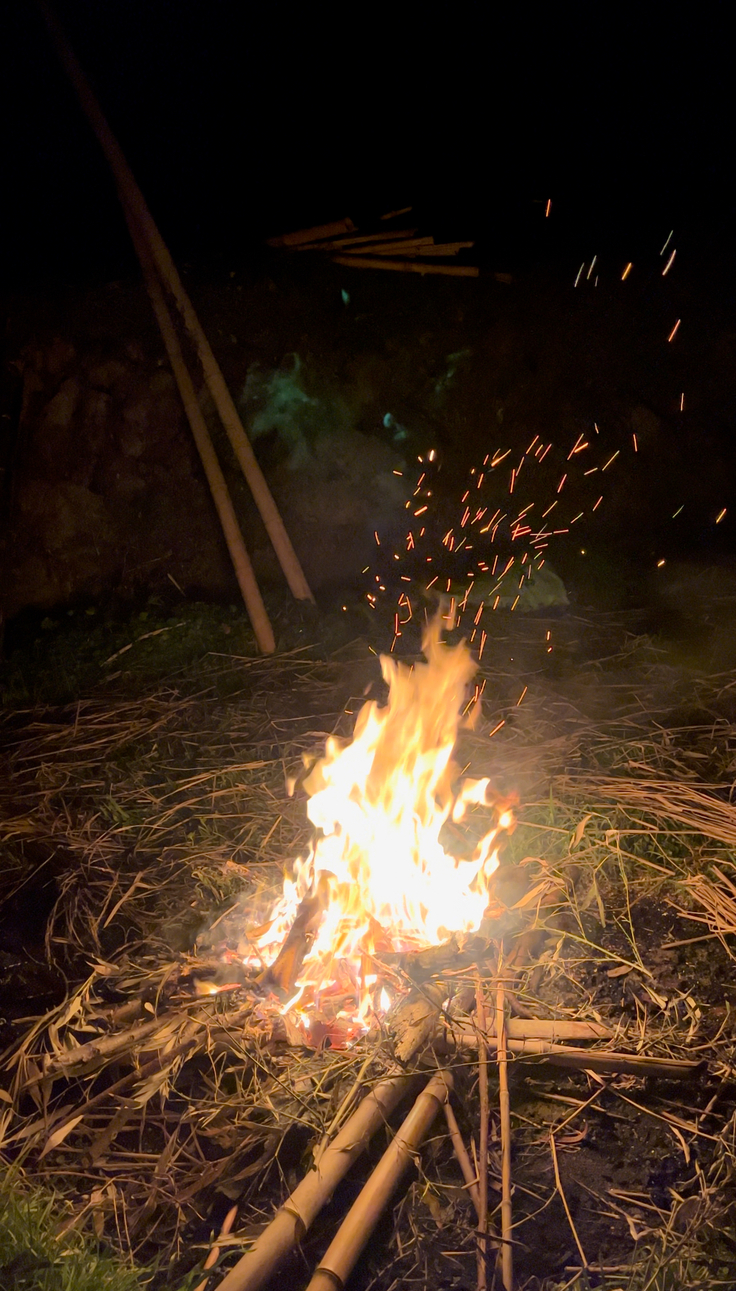 2組の方にこのリターンを選択していただき,2組とも糸島市川付の山の中の田んぼで盛大に焚き火を行いました。大量の木や竹をくべて,がんがん燃やします。山の奥でまわりに気兼ねなく巨大な炎を楽しめるリターンでした。