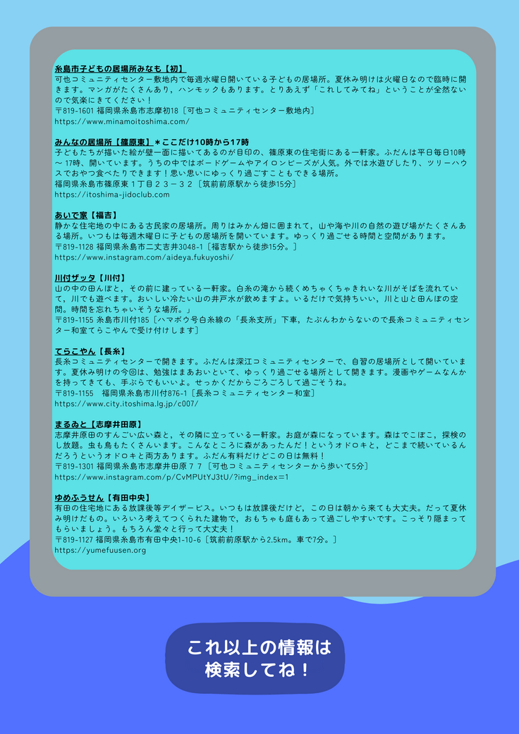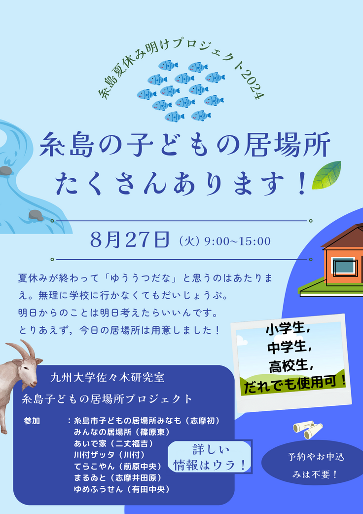 糸島夏休み明けプロジェクト2024のチラシをお送りします。