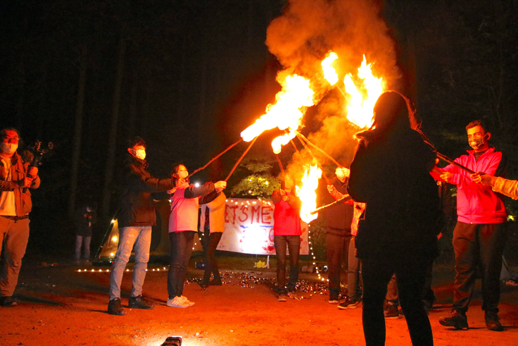 火を囲んでダンスやパフォーマンスをすることで、自分の殻を破り、自由でありのままの自分になる体験をします。