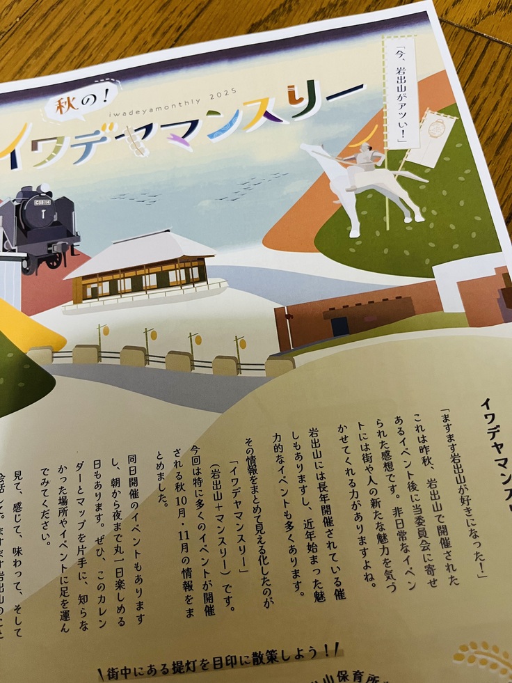 岩出山で造形教室を軸としたワークショップスペース『ノキノシタ』を運営されている渋谷ひでみさんが岩出山の10月のイベント情報を集約したリーフレットを作成していただきました!