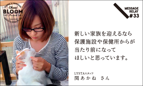 第33回目の『メッセージリレー』は、LYSTAスタッフの関あかねさんです!