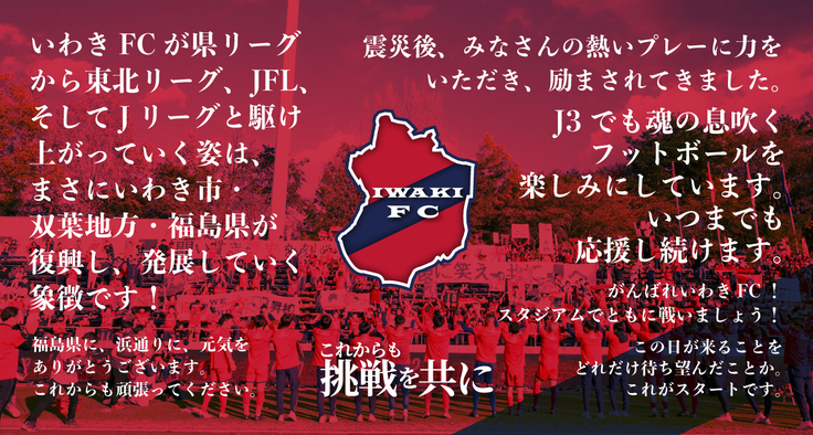 「来たぞJ3。これからも挑戦を共に|いわきFCクラウドファンディング」