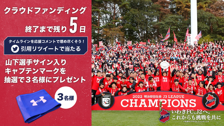 いわき公式Twitterの下記投稿に、皆さんの熱い応援メッセージと「#いわきFCクラウドファンディング」のハッシュタグを文面につけて「引用リツイート」