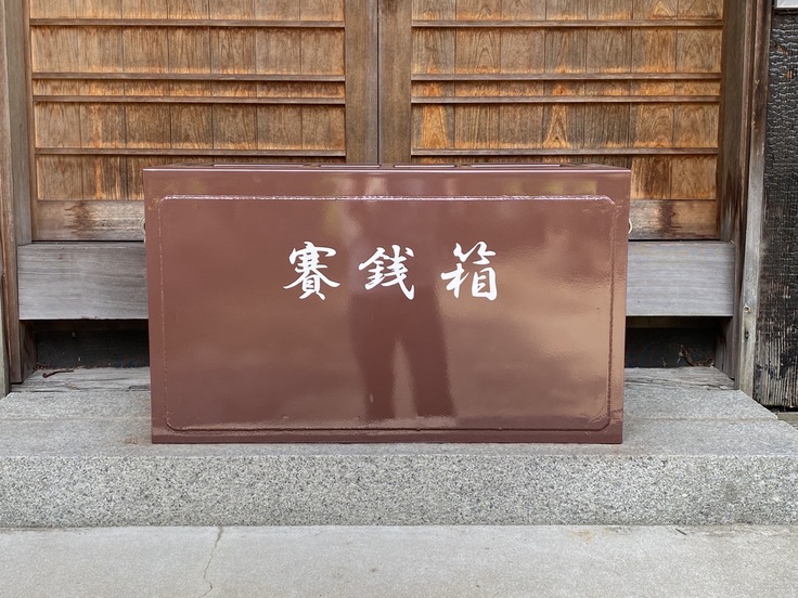 そして新たに、金属製の賽銭箱を業者さんにお願いして作成。