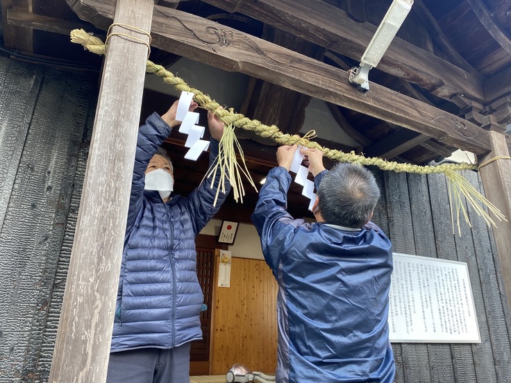 お隣り町の「両児神社」より宮司様をお迎えして、今までの御働きを労い、お役御免とさせていただきました。