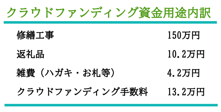 修繕費用の150万円全額を、この度のクラウドファンディングで補わせていただくのが理想ではありましたが、なにせ初めてのクラウドファンディングチャレンジであり、どこまでのご支援をいただけるかは未知数でありましたため100万円を目標とし、不足分は岩倉神社の積立金でなんとか、補う予定でおりました。