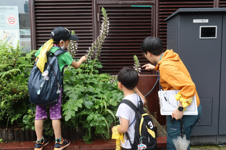 みつばちの活動範囲は通常半径2kmといわれています。 巣箱を置く場所の周辺に十分な蜜源植物(蜜を採取できる草木)がないと、みつばちが死んでしまうため、まずはフィールドワークで横浜駅周辺の緑の状態を調べています。その結果を元に「横浜駅周辺グリーンマップ」を作成し、みどりの少ないエリア、みどりはあるけれど花が咲く植物がないエリアなどをマップにして、みつばち達が元気に活動をするために、どこに、どんな植物があればいいのか、という計画を立てる予定です。その後、横浜市、地域団体、周辺の企業などに提案をして、一緒に横浜駅の周辺に蜜源植物を植える活動をしていきたいと考えています。