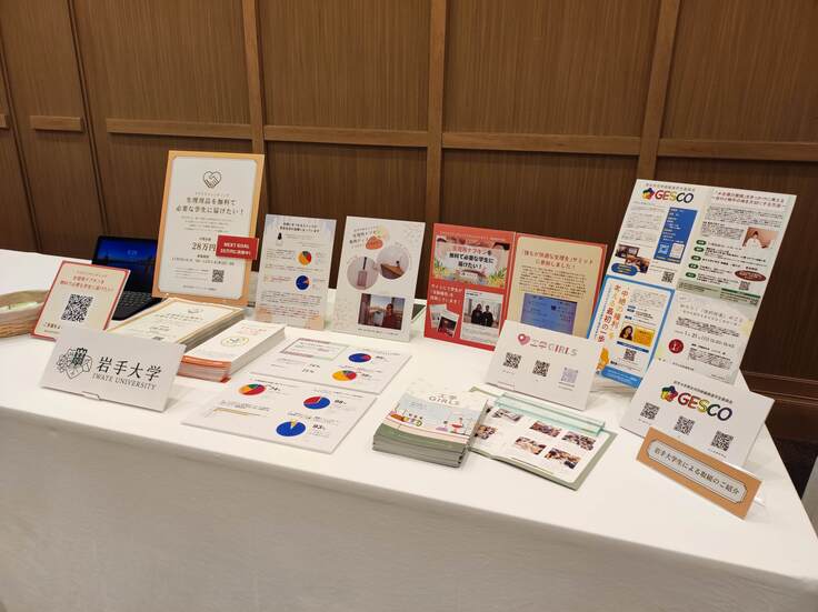 会場にはフェムテック、フェムケア関連の様々な業者等が出展しており、参加者も様々でした。予想以上に、本ブースに足を止め話を聞いてくださる方が多く、生理用品無料配布に大学が取り組んでいることに驚く方や、取組に共感、賛同してくださる方がたくさんいました。
