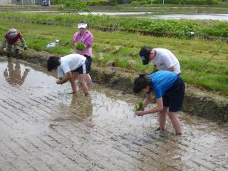 <田植えの様子> <水生生物観察会> <カヌー教室> <しょっつる作り>