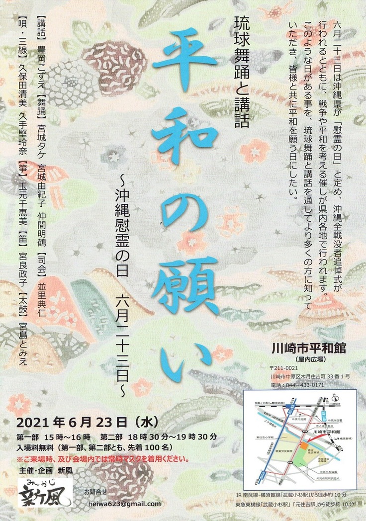 琉球舞踊と講話「平和の願い」のご案内(6月23日)
