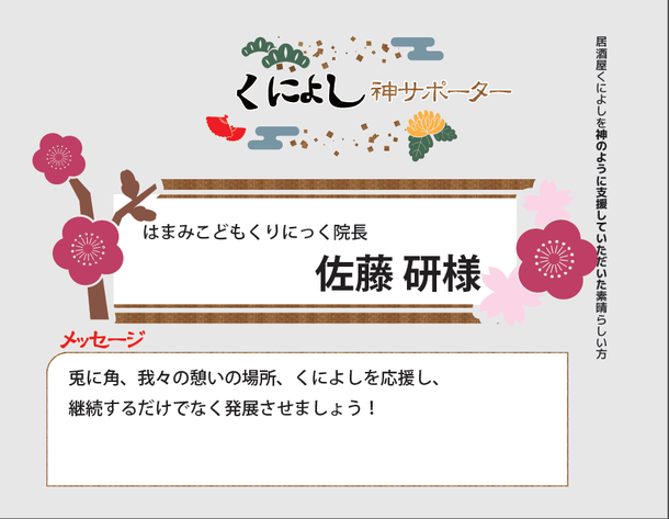・サポーターとして店内やHPにお名前掲載(小サイズ)