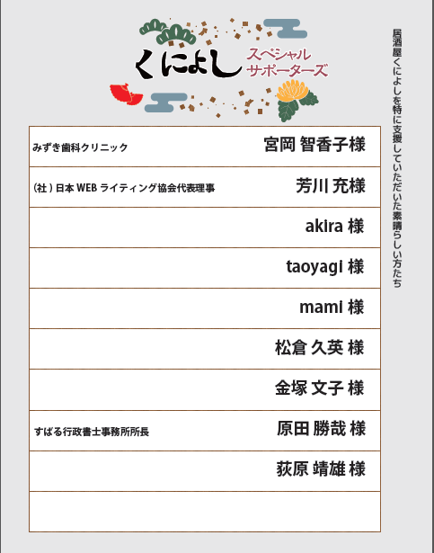 <最新サポーターズリスト>(店内とくによしHPに掲載しています)