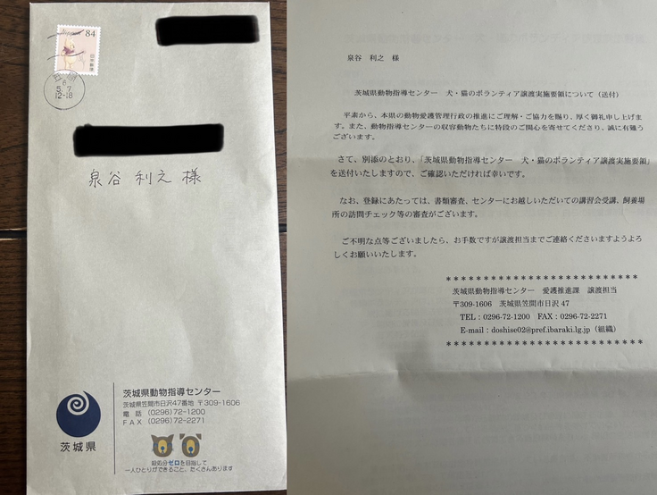 現在、保護犬活動に関しては茨城県動物指導センターにて相談をしながら指導をいただき活動しています。