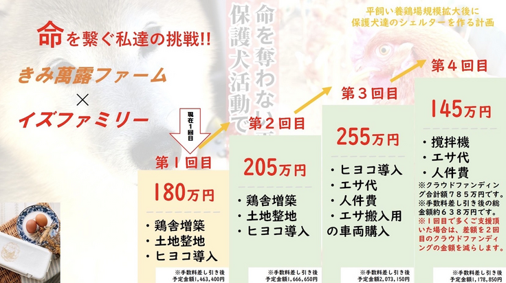 ※1回目で多くのご支援があった場合2回目のクラウドファンディングの金額を減らします。