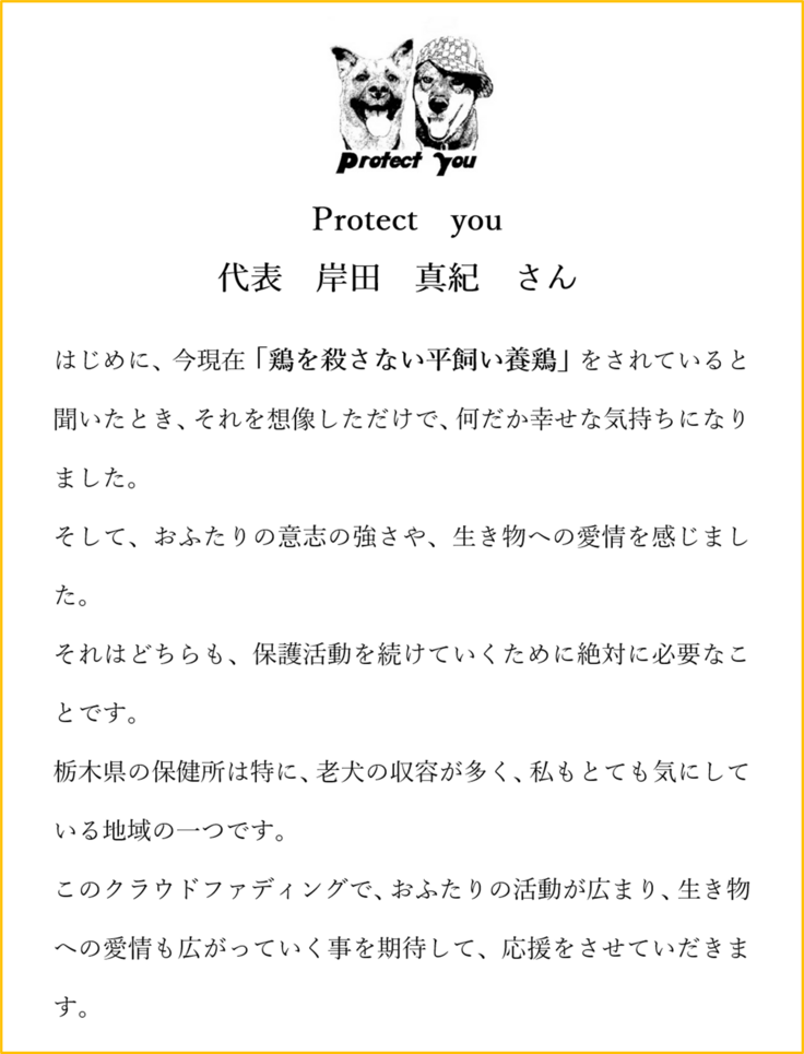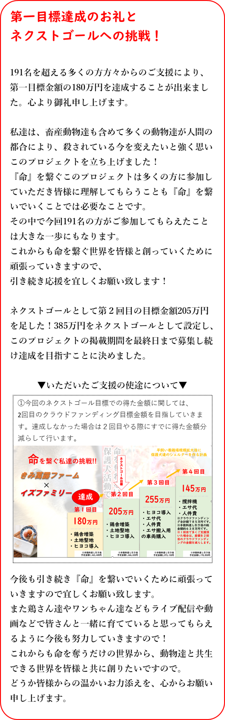 ですので今回、平飼い養鶏場を規模拡大していき保護犬活動に売り上げの一部を使っていき多くの命を救っていきたいと思い今回のプロジェクトを立ち上げました!!