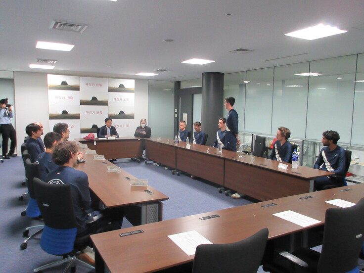 監督、コーチ、選手の自己紹介、大会に向けての抱負を語りました。