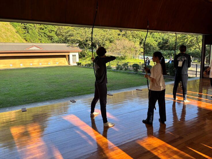 ただの見学に留まらず、アイビーリーグ選抜チーム側からのお願いを聞いていただき、安全に考慮した範囲で弓道の作法について手ほどきをいただきました。