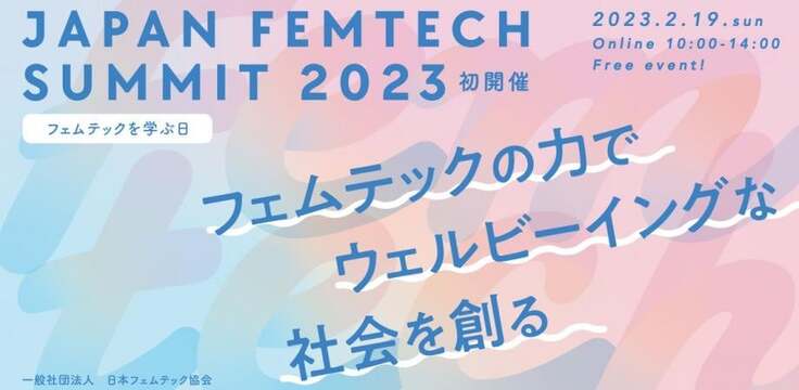 一般社団法人日本フェムテック協会(代表理事:山田奈央子・関口由紀、所在地:東京都港区、HP:https://j-femtech.com 、以下当協会)は、2023年2月19日(日)“フェムテックを学ぶ日”に『第1回JAPAN FEMTECH SUMMIT 2023』をオンラインにて開催。特設イベントサイトにてチケット申し込みを開始しました。