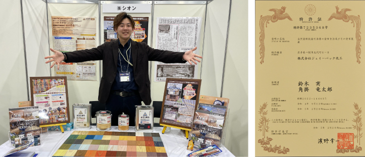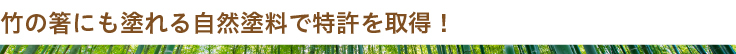 従来の「竹に自然塗料は無理」という常識を覆した塗料と塗装方法で特許も取得しました。