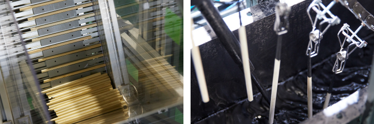 効率的に箸を塗装できる機械がないのです。オリジナルの塗料なので、その性質に合った塗り方や乾燥方法を考慮する必要がありました。