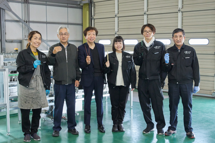 竹から生まれて土に還る、環境負荷も健康リスクも少ない「竹染箸」を日本国内はもちろん、世界中で使ってもらうため、大量注文に応えられる生産体制を整えてまいります。具体的には、現代の名工、後藤さんが開発した、自然染料を竹箸に自動的に塗る機械の増設に充てたいと考えています。