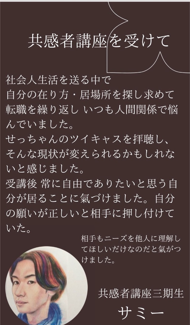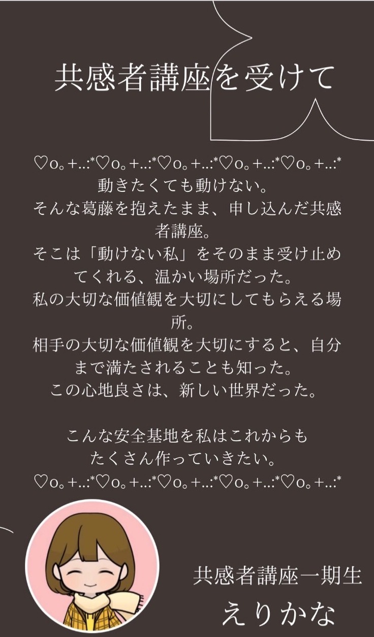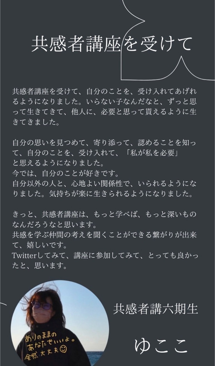 その前身である共感者講座を受講いただいた方のメッセージをご紹介したいと思います。