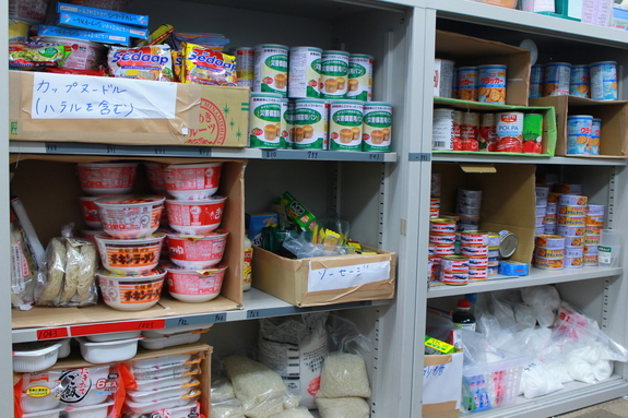 ボランティアさんに車を出していただき、早速、第一弾の物資を購入!すかすかだった食糧ラックが、写真の通りぎっしり!歯ブラシなどの衛生用品も購入できました。
