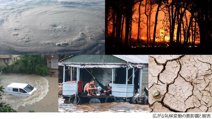 気候変動に伴う自然災害はすでに起き、農産物などへの悪影響や、豪雨や台風による甚大な被害が出ています。気候変動対策の究極的な目標は、こういった気候変動に伴って生じる悪影響や被害を抑えることです。