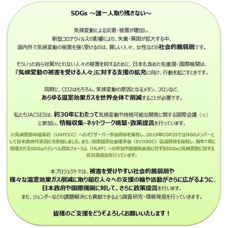 気候変動対策の拡充にむけ、JACSESの活動を応援してください!