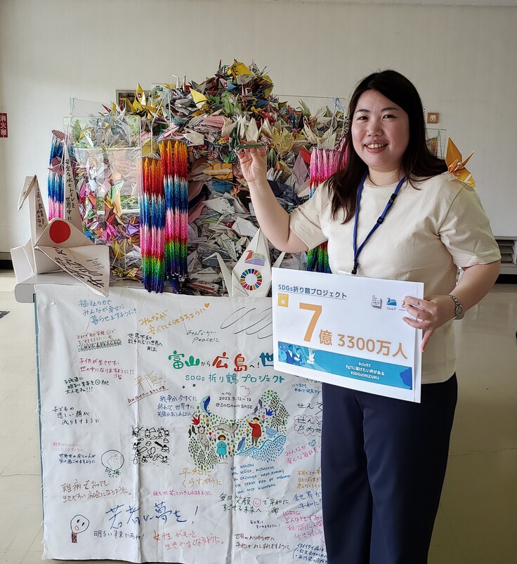 この折り鶴に平和への願いを込め、世界中に平和とSDGsの重要性を伝えました。