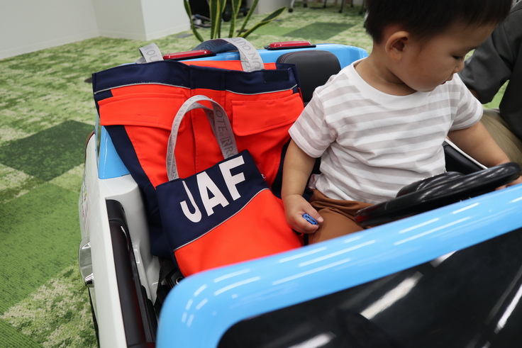メンバーの息子くんが乗っている「JAFオリジナルキッズサービスカー」は、実際にJAF東京支部が主催・出展する交通安全イベントで乗れることも!(身長・体重制限あり。イベントの内容により出展していないことがあります。)