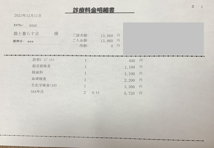 ■12/11 2回目検査 13,860円(かかりつけ動物病院)