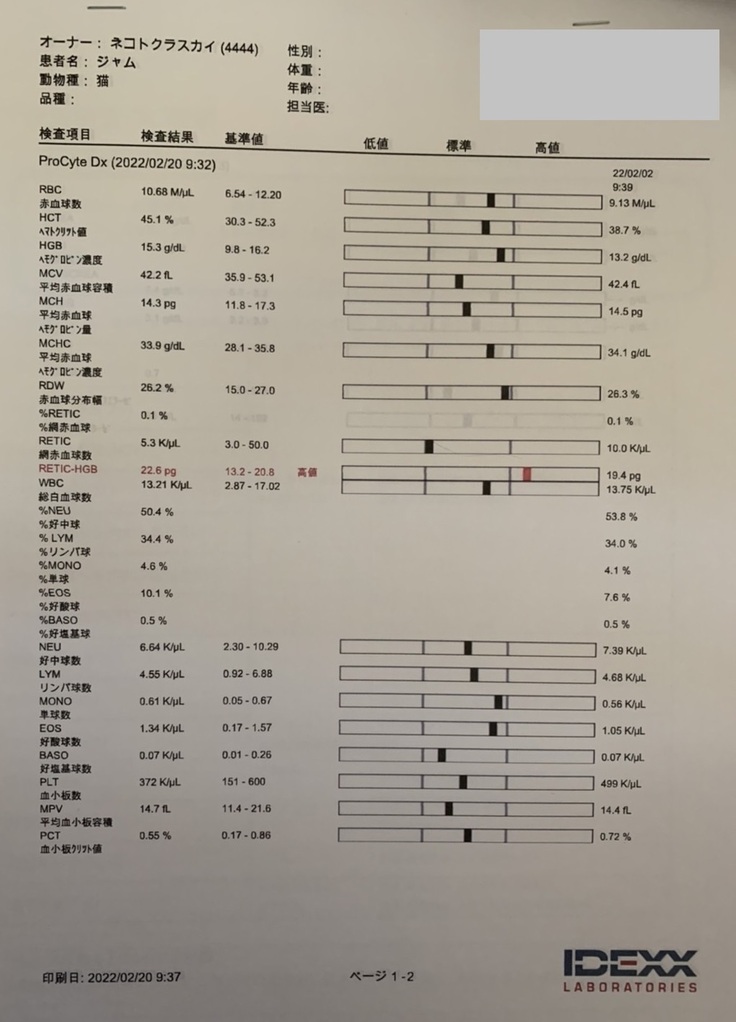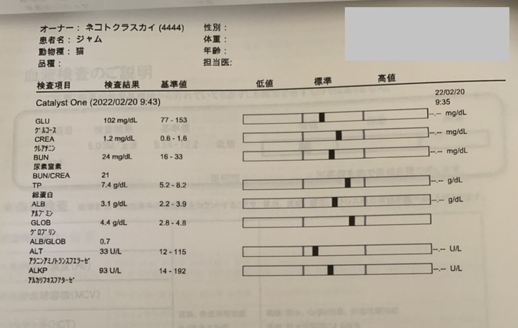 食欲や体調がよければ、次回は1ヶ月後の検査で問題ないそうです。