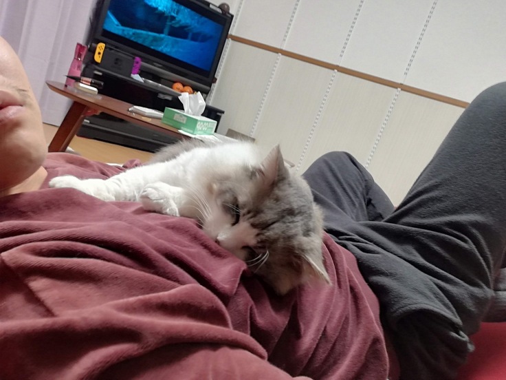 ↓人のおなかの上でゴロンとするのが大好きになってくれました。