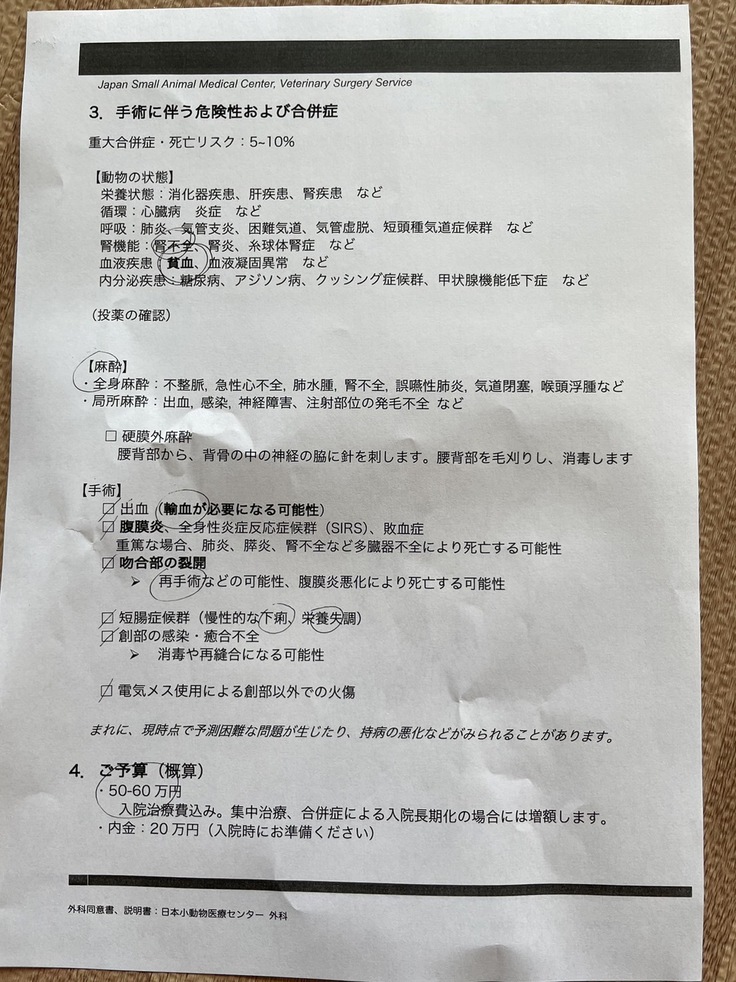 そこから、手術をすると、最低でも500,000円~600,000円はかかるとのことでした。