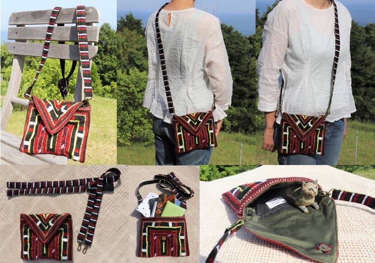 取り外し可能なストラップが付いているので、ポーチとしても、結び目を作って、長さ調節しながらサコッシュとしても、お使いいただけます。