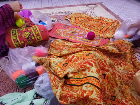 女性たちに何をしているの?と問いかけると返ってくる言葉は、ほぼ毎回Doch Dochです。針と糸さえあればいつでも、どこでもできる反面、目や肩への負担があることも今回の訪問で知りました。さらに時代の流れとともに若い世代は、少しずつ縫うことへの抵抗も感じている様子が垣間見えました。