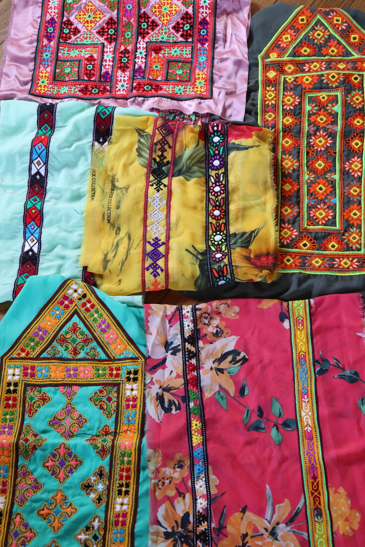 ベルトのように長い刺繍が今回は入っていたので、友人からのアイデアにあったカメラストラップもいいかも~、今回は女性用が多かったので、ユニセックスで使えるものも作りたいななど、今度はどんなものを制作していこうかと毎日布を見つめながら考えています。