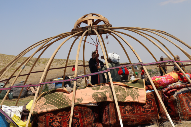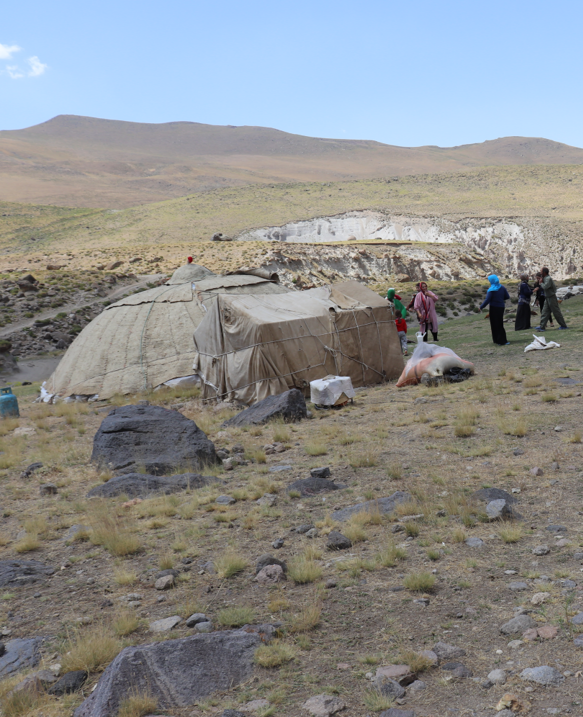 都市部に定住する住民がいる一方で、内陸部には今も季節に応じて移動しながら羊を飼い、絨毯を織るなどして暮らす遊牧民もいます。景色が良く、たまたま車を止めて歩いていると、少し先に遊牧民の家を発見!