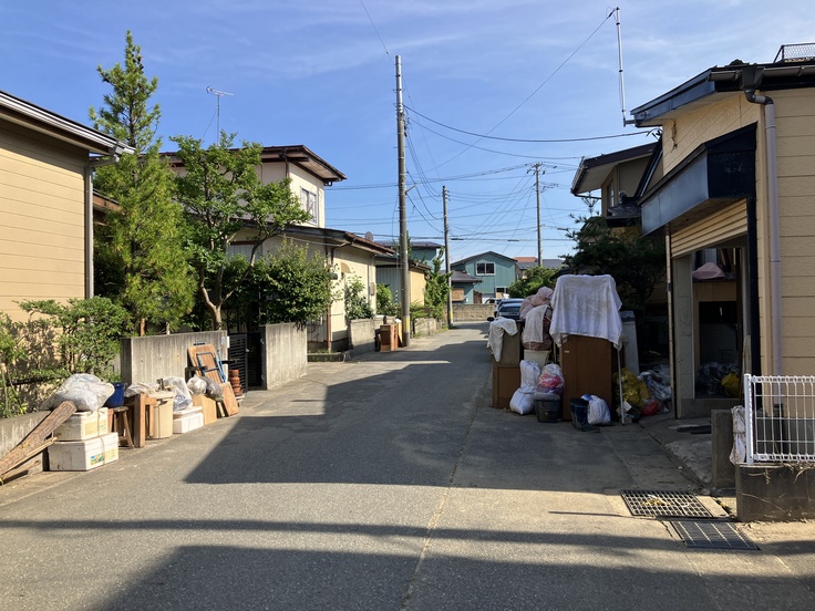 その1本後ろの道に入れば、まず目に入るのは道路に出された家財道具、大量のごみ袋。