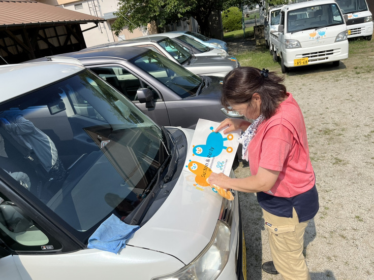 車両運搬、洗車、室内清掃、ステッカー貼り、青空車両点検等々で