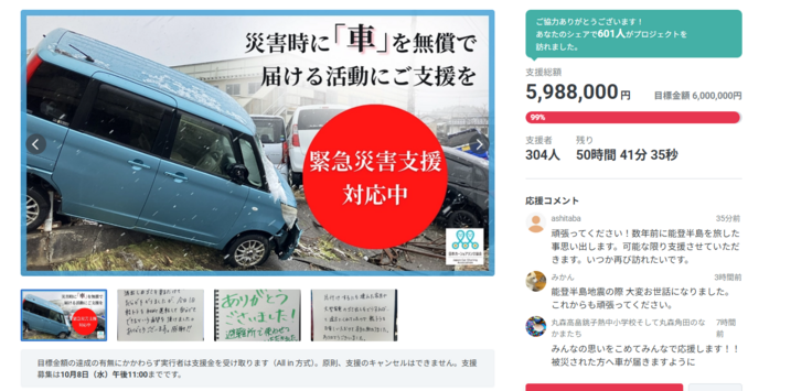 明日の災害に備える仕組みにご支援を|カーシェアサポーター募集