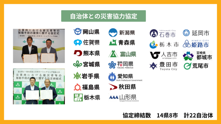 翌年には「モビリティ・レジリエンス・アライアンス」を締結し、防災や災害支援における連携をはかっております。