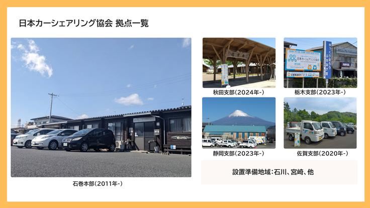 一般社団法人日本カーシェアリング協会は東日本大震災をきっかけに設立された非営利団体です。車を失った方のために車の寄付を募り、その車を共同利用(カーシェア)していただくことから活動が始まりました。 それ以降、寄付車を活用した全国の被災地での車の無償貸出支援や、コミュニティ、生活困窮者支援等を行っています。 団体ホームページ:https://www.japan-csa.org/