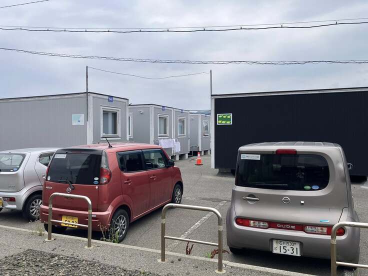 輪島では仮設住宅に止まるカーシェアの車。