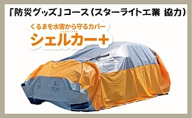 商品協賛をいただいた、車を震災から防ぐ防水カバー「シェルカー+」です。
