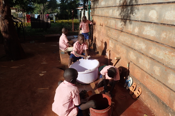 みんな朝早くから元気に学校へと通い、休みの日は洗濯や靴洗い、縄とびなどして遊んでいます。
