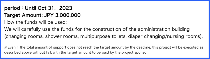On the other hand, as mentioned earlier, we are still in a situation where we do not have enough funds, so we have decided to challenge crowdfunding in order to ask for your help in funding part of this rebuilding work.