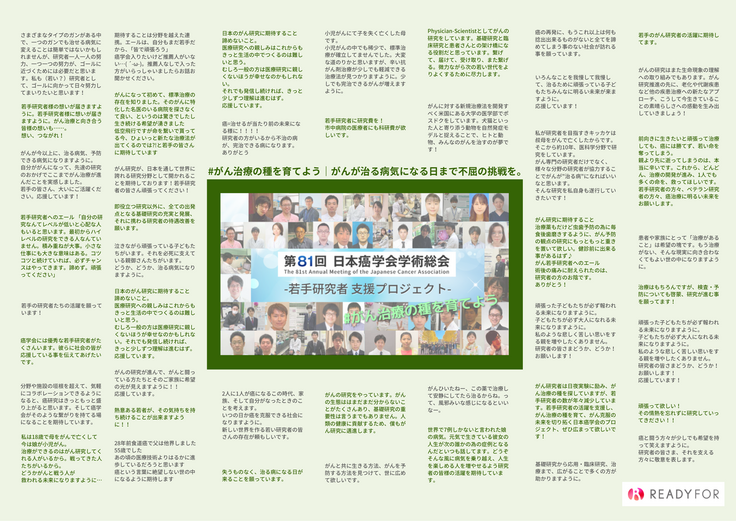 がん若手研究者支援プロジェクトを応援くださり、本当にありがとうございます!